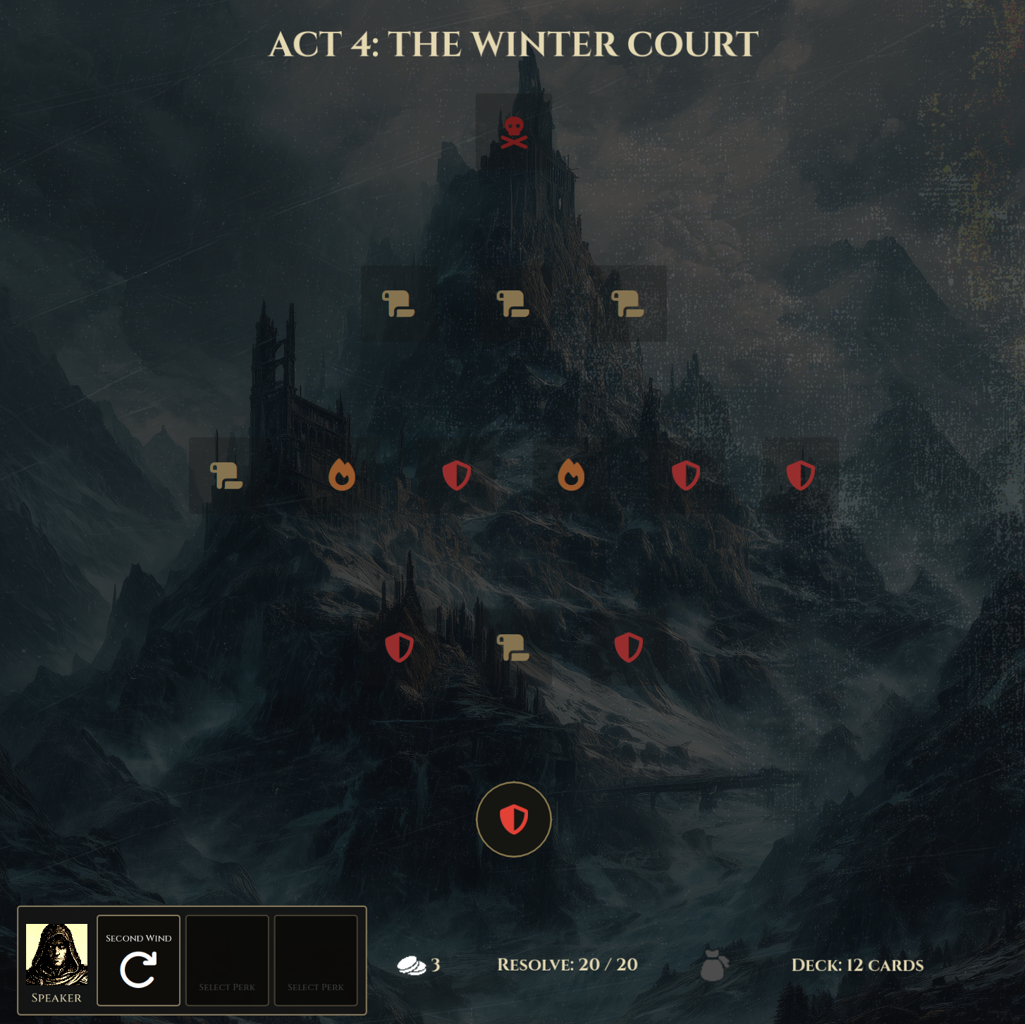 Your mistakes compound. Health carries over between encounters. There's no free healing. Choose your rewards carefully - a powerful card, a useful item, or precious rest.